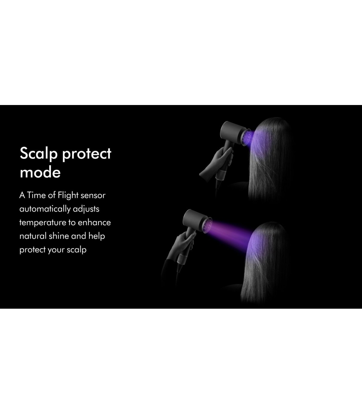 حالت محافظت از پوست سر: سنسوری به نام Time of Flight، دما را به طور خودکار تنظیم میکند تا دمای ایدهآل ۵۵ درجه سانتیگراد را در پوست سر حفظ کند.