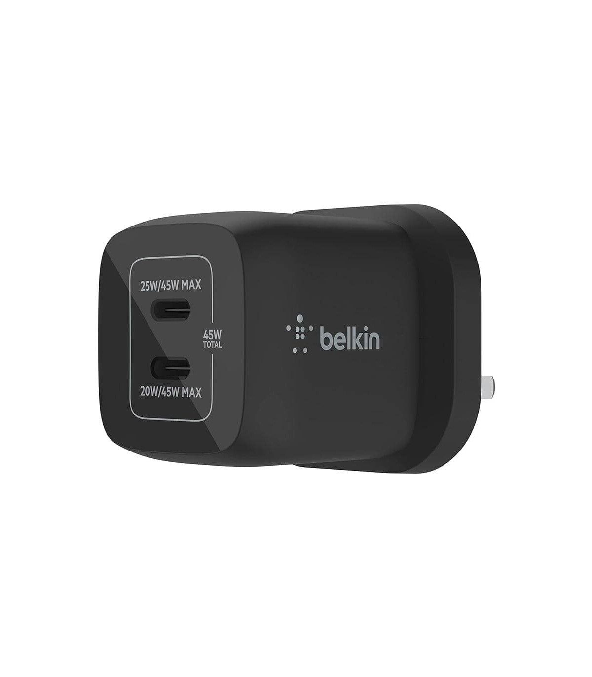شارژر دیواری ۴۵ وات بلکین Belkin BOOST CHARGE PRO Dual USB-C GaN Wall Charger with PPS 45W - مدل WCH011 - مشکی