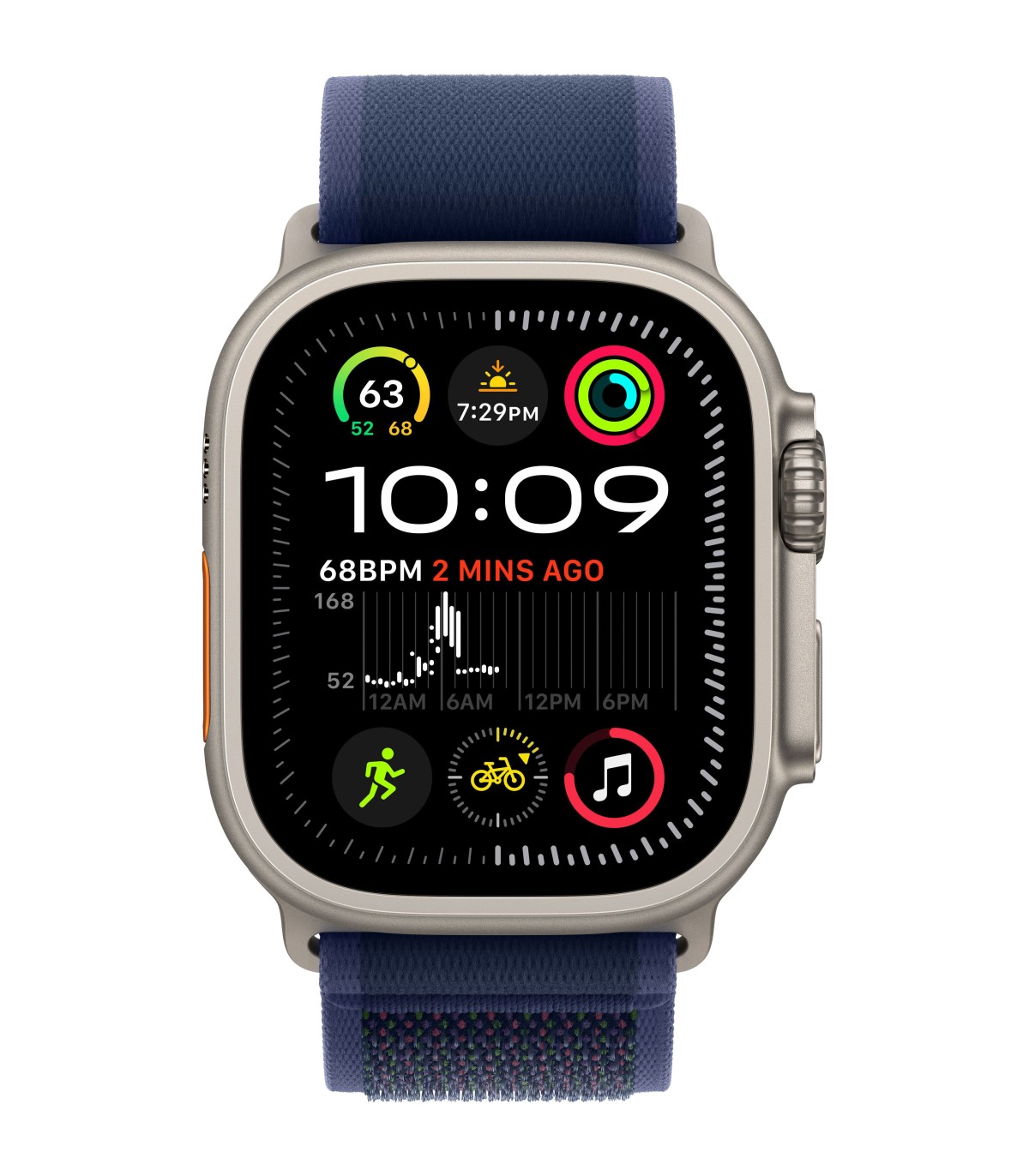 اپل واچ اولترا ۲ یکی از ساعتهای هوشمند رده بالا برای استفادههای ورزشی است. به لطف حسگرهای متنوع و پیشرفته، طول عمر بالای باتری و بدنه مقاوم تیتانیومی، این مدل از اپل واچ یک انتخاب عالی برای ورزشکاران حرفهای به حساب میآید. مشاهده وضعیت فعالیت فیزیکی، خواب و گزارشی ضربان قلب در طول روز نیز به سادگی در نرمافزار Health اپل ممکن است. اپل از یک بدنه با سایز ۴۹ میلیمتری برای نسل دوم اپل واچ اولترا استفاده کرده که ظاهری کاملا مشابه با نسل اول دارد. با این وجود اضافه شدن برخی حسگرها و بهبود عملکرد کلی به واسطه چیپست جدید S9 سبب شده تا ارزش خرید این مدل بیشتر از نسل اول باشد.