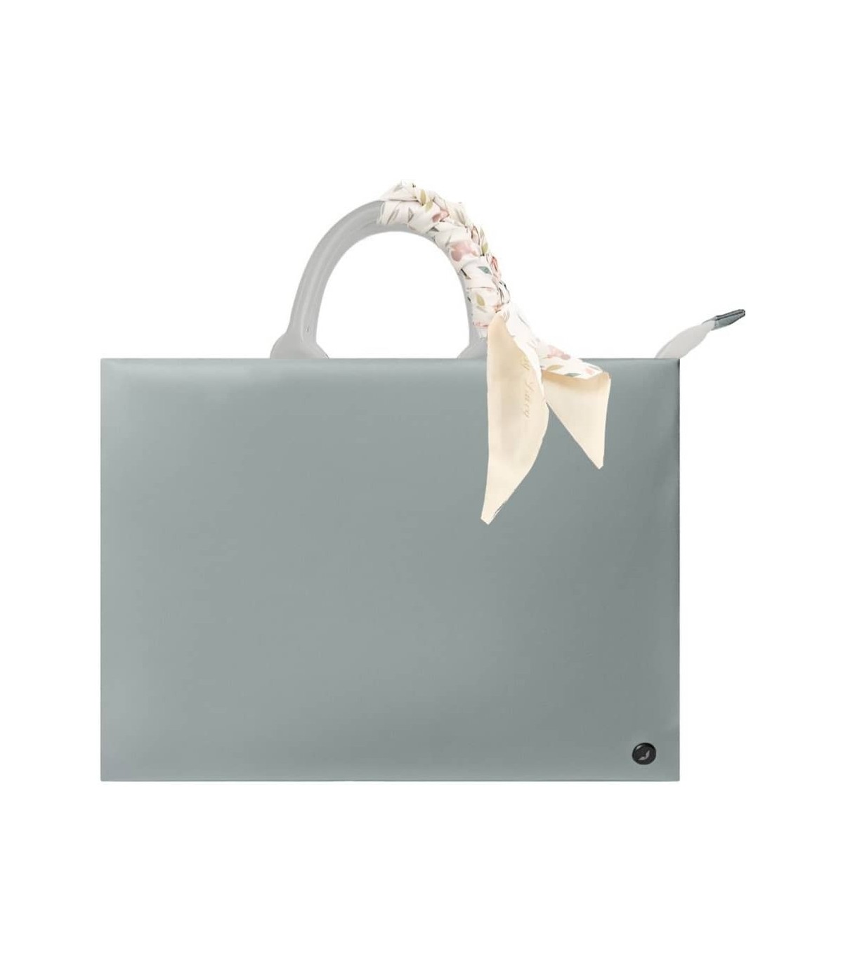 یکی از اولین چیزهایی که در مورد Florence Briefcase Sleeve توجه شما را جلب میکند، دستهی چرمی خاکستری مایل به نقرهای آن است که با یک شال پارچهای تزئینی پوشانده شده. این جزئیات به ظاهر ساده، اما تأثیرگذار، باعث میشود که کیف در عین رسمی بودن، روحیهای زنانه، مدرن و سبکدار به خود بگیرد. وجود این شال کوچک که با طرح گلدار و ملایم طراحی شده، کیف را از دیگر محصولات موجود در بازار متمایز میکند.