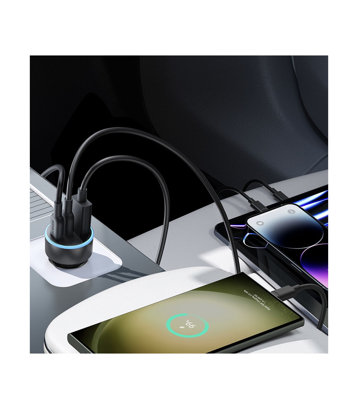 شارژر فندکی انکر ۶۷ وات دارای دو پورت خروجی USB-C است که هر کدام از این پورتها قابلیت شارژ سریع با توان بالا را دارند. پورت اول با توان خروجی ۴۵ وات و پورت دوم با توان خروجی ۲۰ وات میتواند به طور همزمان دو دستگاه را شارژ کند. این قابلیت به خصوص برای افرادی که نیاز دارند در کمترین زمان ممکن دستگاههای خود را شارژ کنند بسیار کاربردی است.