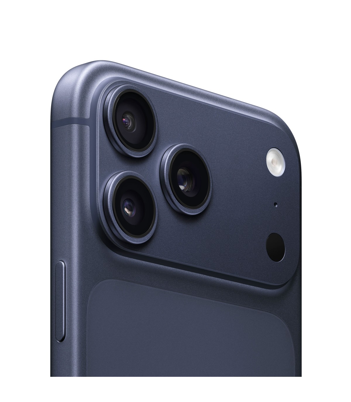 اپل این بار با تغییر در طراحی ماژول دوربین آیفون سعی کرده تا از طراحی تکراری اما محبوب ۶ سال اخیر پرچمدارهای خود فاصله بگیرد. در نتیجه بجای یک برآمدگی شیشهای مربعی شکل، امسال اجزای دوربین آیفون در یک برآمدگی مستطیلی شکل فلزی قرار گرفتهاند. در نتیجه استفاده از سیستمهای بزرگتر اپتیکی، لنزهای پیشرفتهتر و حسگرهای بزرگتر ممکن شده است. هر سه دوربین پشتی آیفون ۱۷ پرومکس حالا به سنسورهای ۴۸ مگاپیکسلی مجهز شدهاند تا وضوح تصاویر در همه زومها بالا باشد. اپل نام این سیستم دوربین را (48MP Pro Fusion Camera System) گذاشته است. عملکرد دوربین به واسطه حسگرهای جدید و پردازش پیشرفتهتر تصاویر در شرایط نوری مختلف بهتر شده و نویز کمتری وجود دارد. لنز همه دوربینها با پوششی از یاقوت کبود مصنوعی (Sapphire Crystal) پوشیده شدهاند تا در برابر بروز انواع خط و خش مقاوم باشند. سیستم فلاش Adaptive True-Tone نیز با بررسی سوژه، دمای نور و تمرکز آن را به صورت هوشمند تنظیم میکند. اسکنر لایدار (LiDAR) نیز با ارزیابی سهبعدی محیط، فواصل را به دقت اندازهگیری کرده و فوکوس خودکار سریع و پیوسته را ممکن میکند.