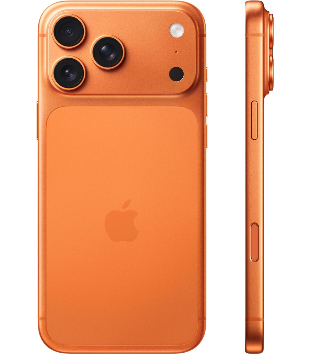 رنگ بندی آیفون ۱۷ پرومکس نیز با اضافه شدن رنگهای نارنجی و آبی، ظاهری متفاوت و هیجانانگیز را به ارمغان آورده است. اگرچه همچنان رنگ خنثی نقرهای در دسترس هست.