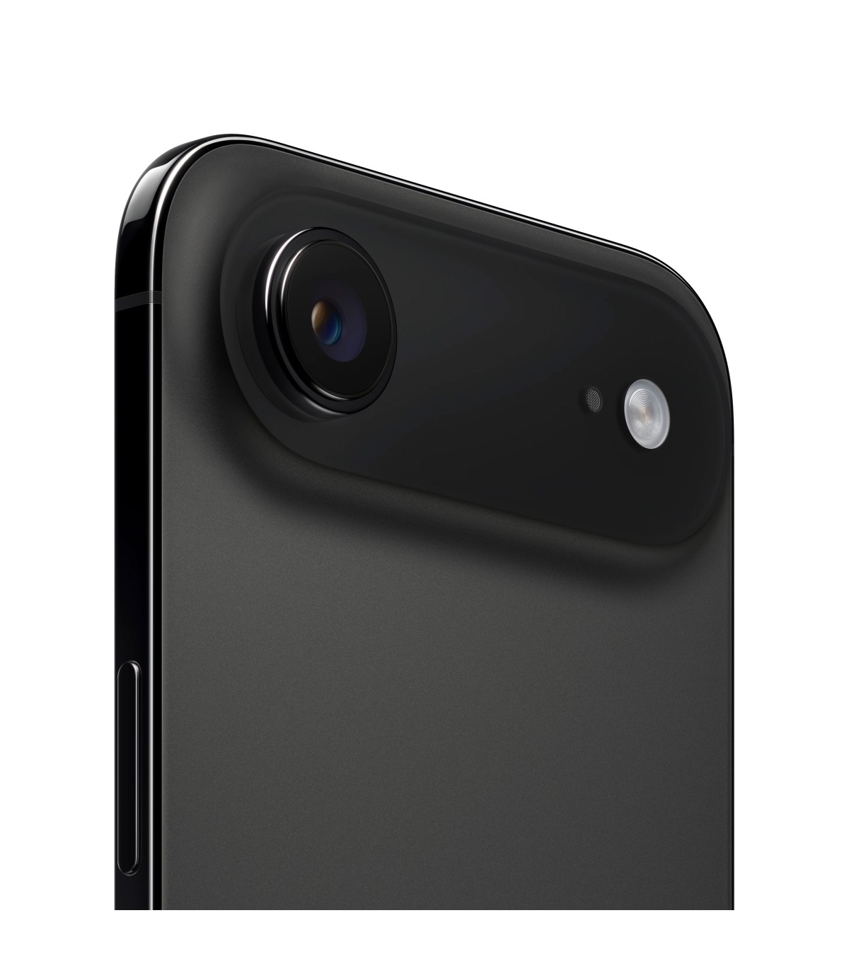 یکی از ویژگیهای مشترک آیفون ایر با آیفونهای سری ۱۷، دوربین جلوی آن است. اکثر سنسور دوربینها به شکل مستطیلی طراحی میشوند و این موضوع سبب میشود تا برای دستیابی به میدان دید وسیعتر، نیاز به چرخش گوشی به حالت افقی باشد. اما دوربین سلفی آیفون ایر به یک حسگر تقریبا مربعی شکل مجهز شده است. در نتیجه شعاع پوشش تصویر در هر دو حالت افقی و عمودی یکسان است و دیگر برای ثبت عکسهای سلفی دستهجمعی نیازی به چرخاندن گوشی نیست. این دوربین به فناوری Center Stage نیز مجهز شده که کادربندی هوشمند را با توجه به سوژه انجام میدهد. به این ترتیب چهره کاربر همواره در مرکز کادر تنظیم میشود و در صورت اضافه شدن افراد دیگر به تصویر، کادر به طور خودکار عریضتر میشود. وضوح ۱۸ مگاپیکسلی این دوربین نیز، رزولوشن بالاتر عکسها و در نتیجه افت کیفیت کمتر در صورت کراپشدن را ممکن میکند.