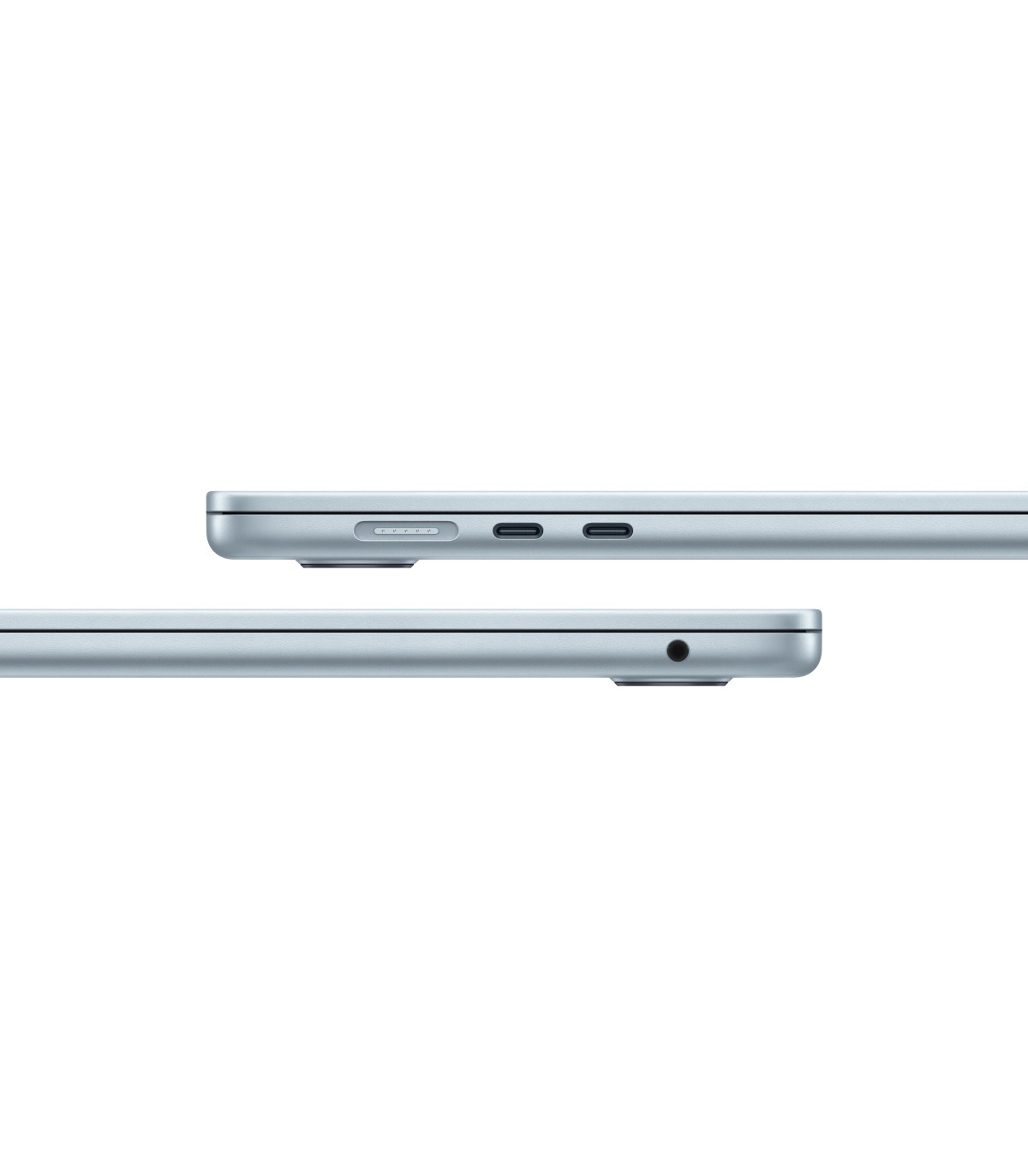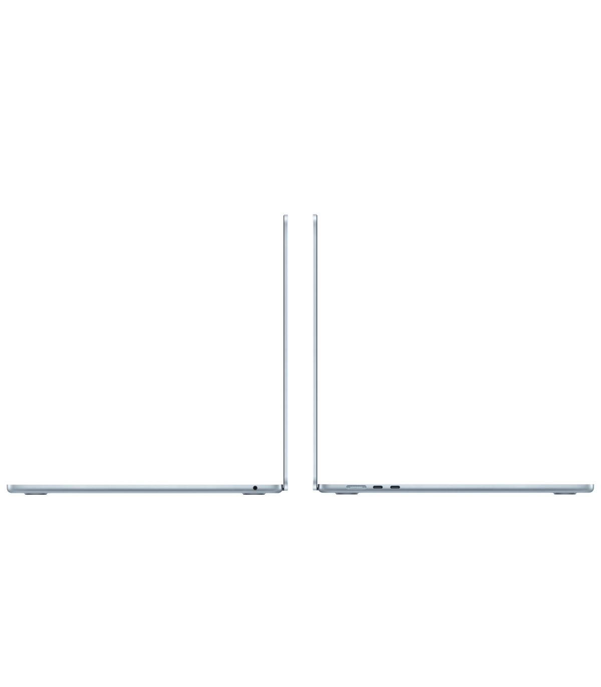 از نظر طراحی ظاهری، مک بوک ایر ۱۵ اینچی M4 هیچ تفاوتی با نمونههای M2 و M3 ندارد. قطر ۱.۱۴ سانتیمتری، نمایشگر ۱۵.۳ اینچی و تنها ۱.۵ کیلوگرم وزن از مشخصههای فیزیکی این لپتاپ باریک و دوستداشتنی هستند. اما اپل امسال تصمیم گرفته تا مک بوک ایر M4 را در یک رنگ جدید به بازار عرضه کند. آبی آسمانی (Sky Blue) که یادآور رنگ نقرهآبی است، ظاهری بسیار شبیه به نقرهای با جلوهای کمرنگ از آبی دارد. اگرچه متأسفانه اپل با این تصمیم به طور همزمان، رنگ خاکستری فضایی (Space Gray) را از سری مک بوک ایر حذف کرده که به عنوان یکی از پرطرفدارترین رنگها، خبر ناامیدکنندهای است.