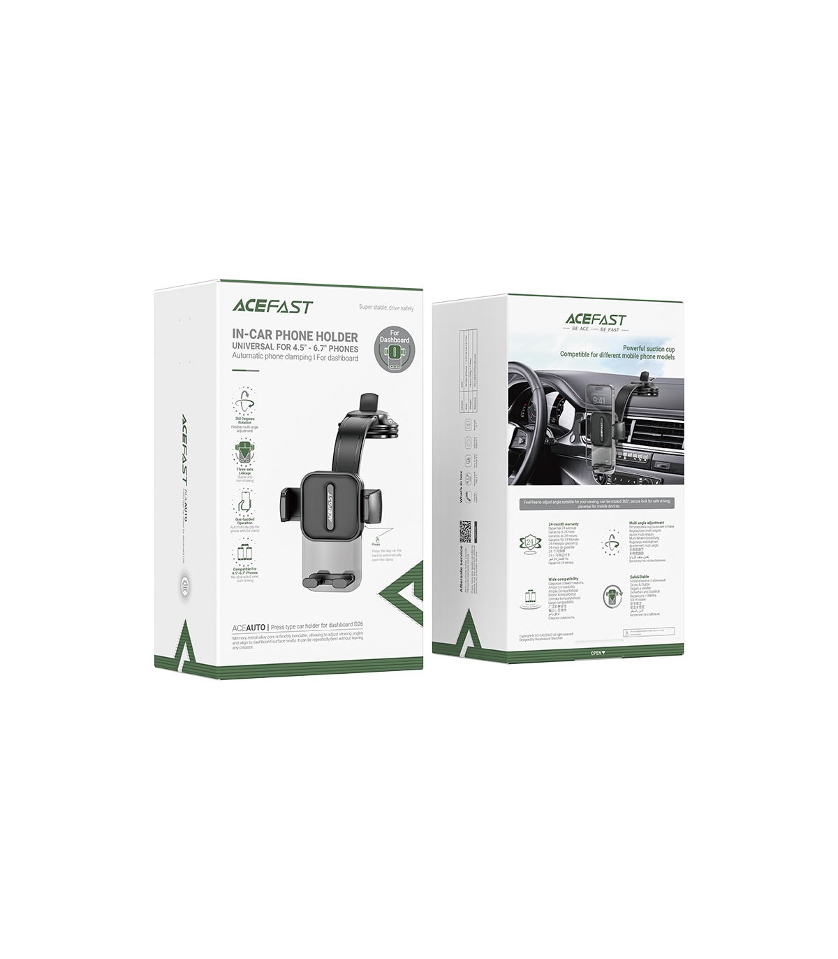 نصب هولدر ACEFAST D26 روی داشبورد خودرو بسیار ساده است و نیاز به ابزار خاص یا مهارت فنی ندارد. این موضوع باعث میشود حتی کاربرانی که تجربه استفاده از لوازم جانبی خودرو ندارند، بتوانند بهراحتی از آن استفاده کنند.