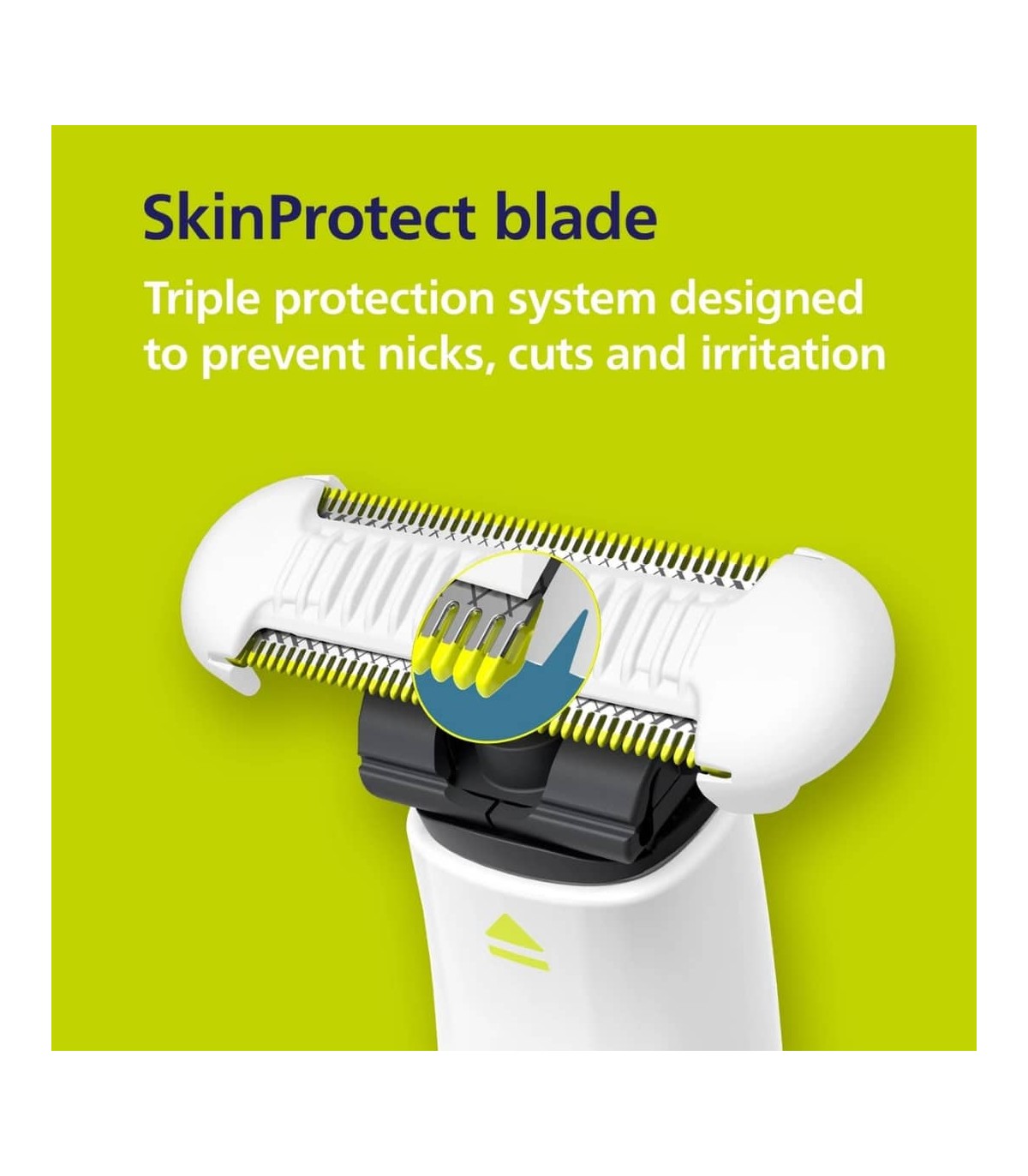 یکی از بزرگترین نگرانیها هنگام اصلاح بدن، بهویژه در نواحی حساس مانند زیر بغل یا ناحیهی تناسلی، ایجاد خراش و بریدگیهای ناخوشایند است. فیلیپس برای حل این مشکل از تیغ SkinProtect بهره برده است. این تیغ با لایهای محافظ طراحی شده تا از تماس مستقیم تیغ با پوست جلوگیری کرده و خطر بریدگی یا تحریک پوستی را به حداقل برساند. طراحی منحنی و سبک دستگاه باعث میشود حرکت آن بر روی پوست روان، ایمن و بدون استرس باشد. این ویژگی بهویژه برای کسانی که تجربهی ناخوشایند از اصلاح در نواحی حساس داشتهاند، آرامش خاطر ایجاد میکند.