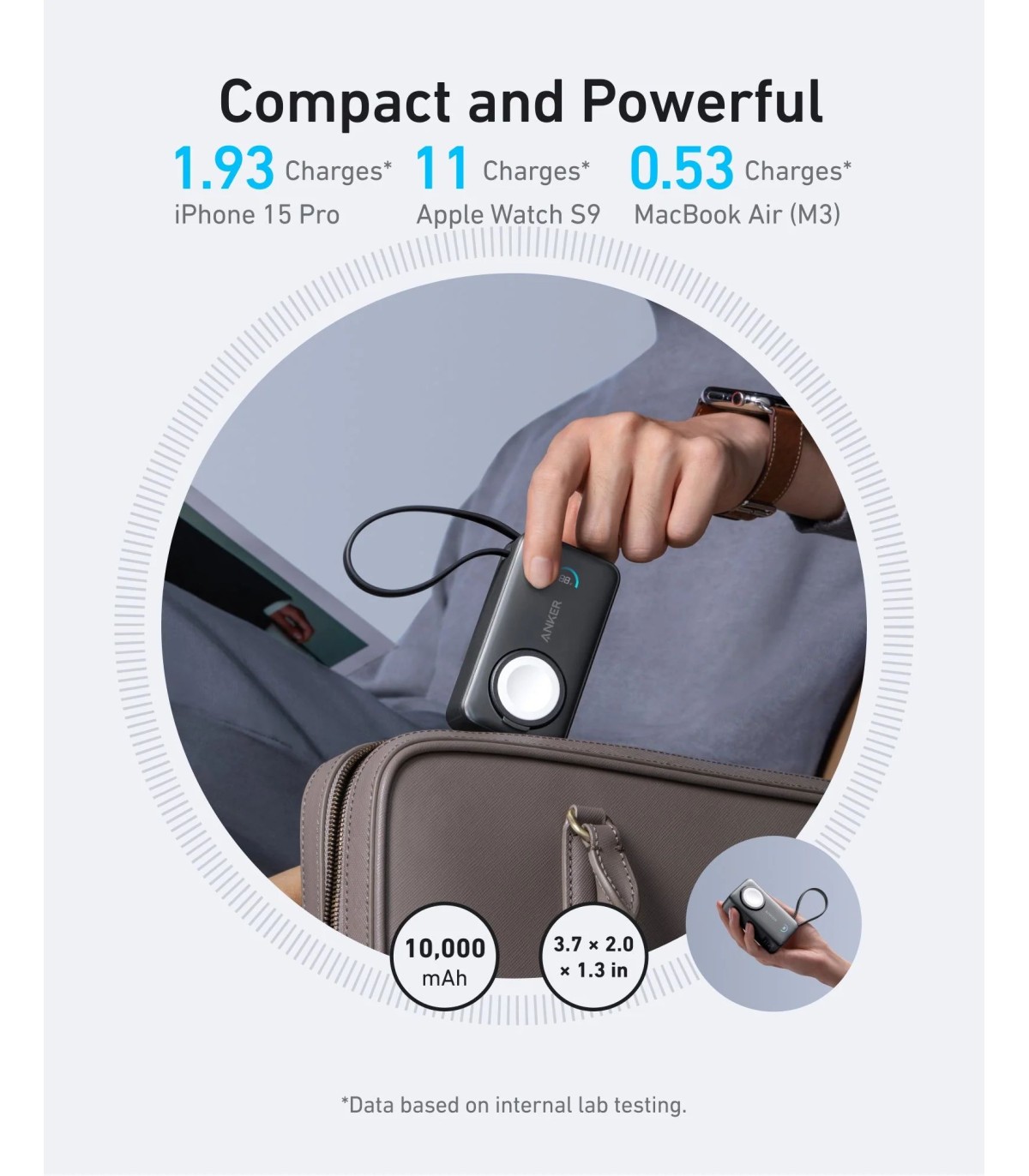 این پاوربانک به یک باتری ۱۰,۰۰۰ میلیآمپرساعتی مجهز شده که میتواند آیفون ۱۵ پرو را حدود دو بار و Apple Watch Series 9 را تا ۱۱ بار شارژ کند. این میزان ظرفیت، برای افرادی که در طول روز استفادهی زیادی از گوشی و گجتهای خود دارند، بسیار کاربردی است.