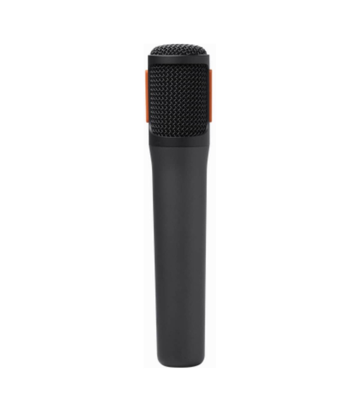 میکروفونهای بیسیم JBL از طراحی بسیار ساده و حرفهای بهره میبرند. بدنهی مشکی مات، با خطوط نرم و دکمهی پاور وسط بدنه، حالتی کاملاً ارگونومیک و مدرن دارد. بخش بالایی میکروفون، که توری فلزی مشکیرنگ با نوار نارنجی در کنارهها آن را پوشانده، تضمین میکند که کپسول داخلی در برابر ضربه، گردوغبار و رطوبت محافظت شود. این ترکیب رنگی—مشکی و نارنجی—هویت برند JBL را نیز بهخوبی نمایان میکند.