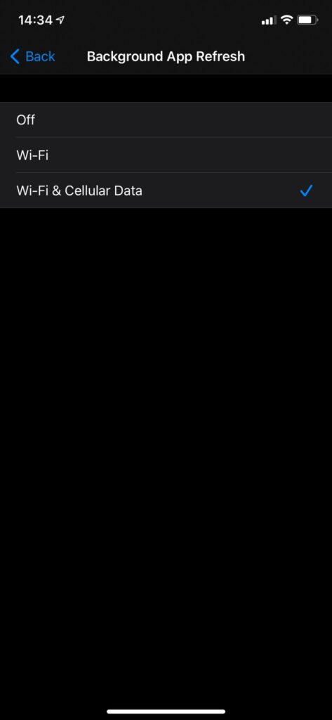 Settings=>General=>Background App Refresh