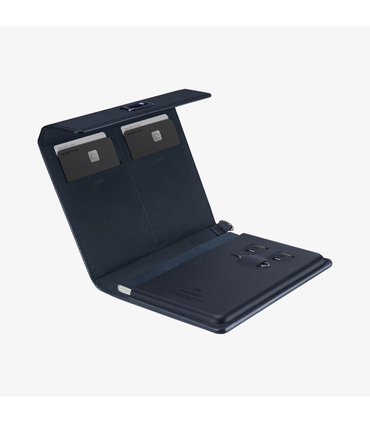یکی از مهمترین ویژگیهای Spigen Passport Holder فضای داخلی آن است که بهگونهای طراحی شده تا بتوانید تمام مدارک ضروری خود را در یک مکان نگه دارید. این کیف شامل: