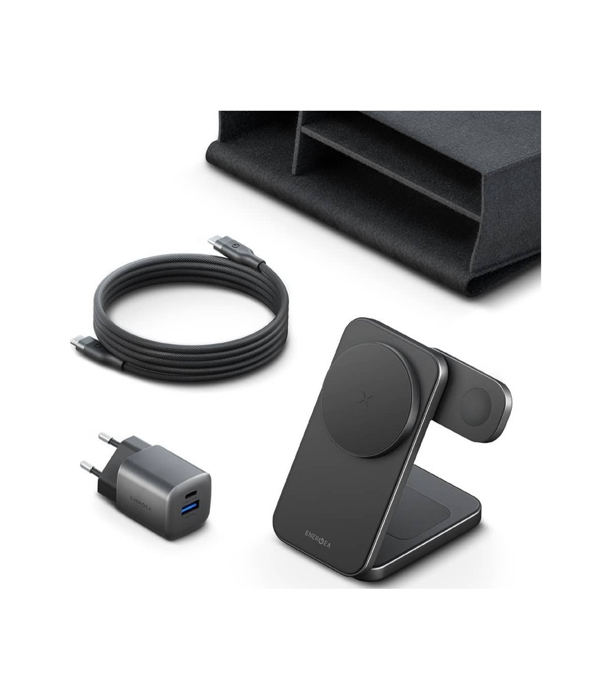 یکی از نقاط قوت کیت Energea Essentials، پایه بیسیم MagTrio Plus است. این پایه دارای طراحی تاشو و بسیار باریک است و میتواند به راحتی در کیف یا کولهپشتی شما جای بگیرد. MagTrio Plus از استاندارد Qi2 پشتیبانی میکند و با داشتن آهنربای قوی، اتصال دستگاهها را مطمئن میسازد.