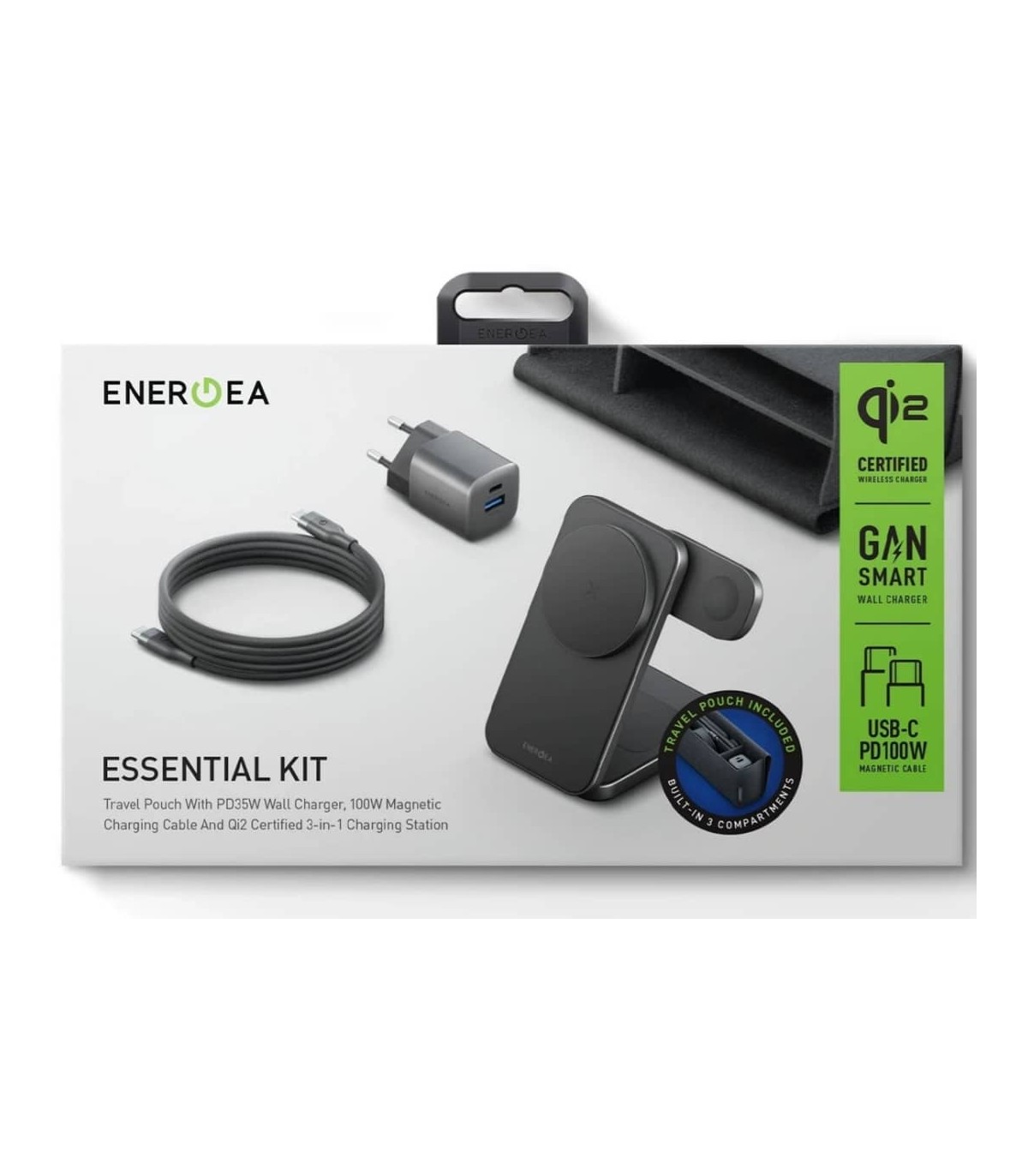 در دنیای امروز، دستگاههای هوشمند بخش جداییناپذیری از زندگی روزمره ما هستند. از گوشیهای هوشمند و تبلتها گرفته تا ساعتهای هوشمند و ایرپادها، ما همواره به یک منبع انرژی مطمئن نیاز داریم. در همین راستا، Energea Essentials Kit با هدف ارائه یک راهکار کامل و جمعوجور برای شارژ همه دستگاههای شما طراحی شده است. این کیت شامل چهار بخش اصلی است: پایه شارژر بیسیم ۳ در ۱، آداپتور دیواری AmpCharge GaN 35W، کابل USB-C با توان بالا Helix 100W و یک کیف مسافرتی جمعوجور.