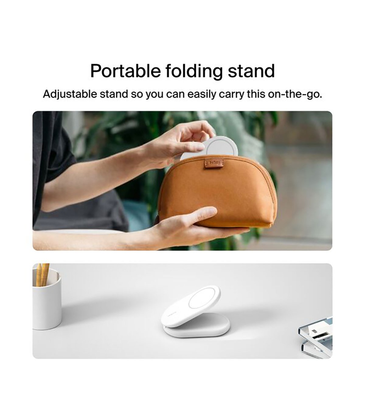یکی از مهمترین مزایای خرید این شارژر، طراحی تاشو آن است. میتوانید آن را در چند ثانیه جمع کنید، در کیف قرار دهید و همراه خود به محل کار، سفر یا حتی کافیشاپ ببرید. برخلاف شارژرهای رومیزی ثابت، این مدل کاملاً قابل حمل و مینیمال است. پایه مغناطیسی هنگام باز شدن، گوشی را در ارتفاعی ایدهآل برای مشاهده اعلانها، تماس تصویری، تماشای محتوا یا حتی حالت StandBy آیفون قرار میدهد.